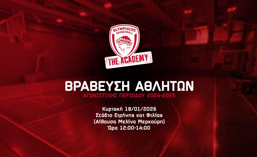 Την Κυριακή 18/01 στις 12.00 οι Ακαδημίες του Ολυμπιακού θα βραβεύσουν τους διακριθέντες αθλητές της σεζόν 2024/2025.