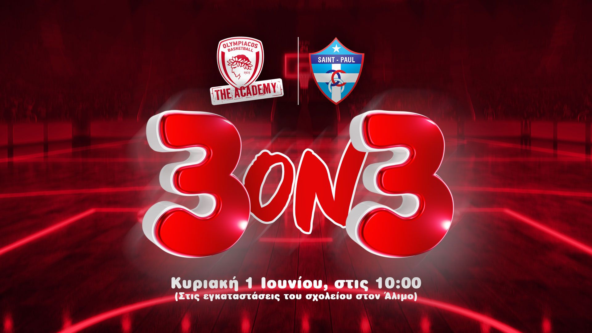Η Ακαδημία Μπάσκετ του Ολυμπιακού, στο πλαίσιο της εκπαιδευτικής και αθλητικής της συνεργασίας με το σχολείο St. Paul, διοργανώνει ένα ξεχωριστό τουρνουά 3on3 μπάσκετ την Κυριακή 1 Ιουνίου, στις 10:00 το πρωί, στις σύγχρονες εγκαταστάσεις του σχολείου, στον Άλιμο.