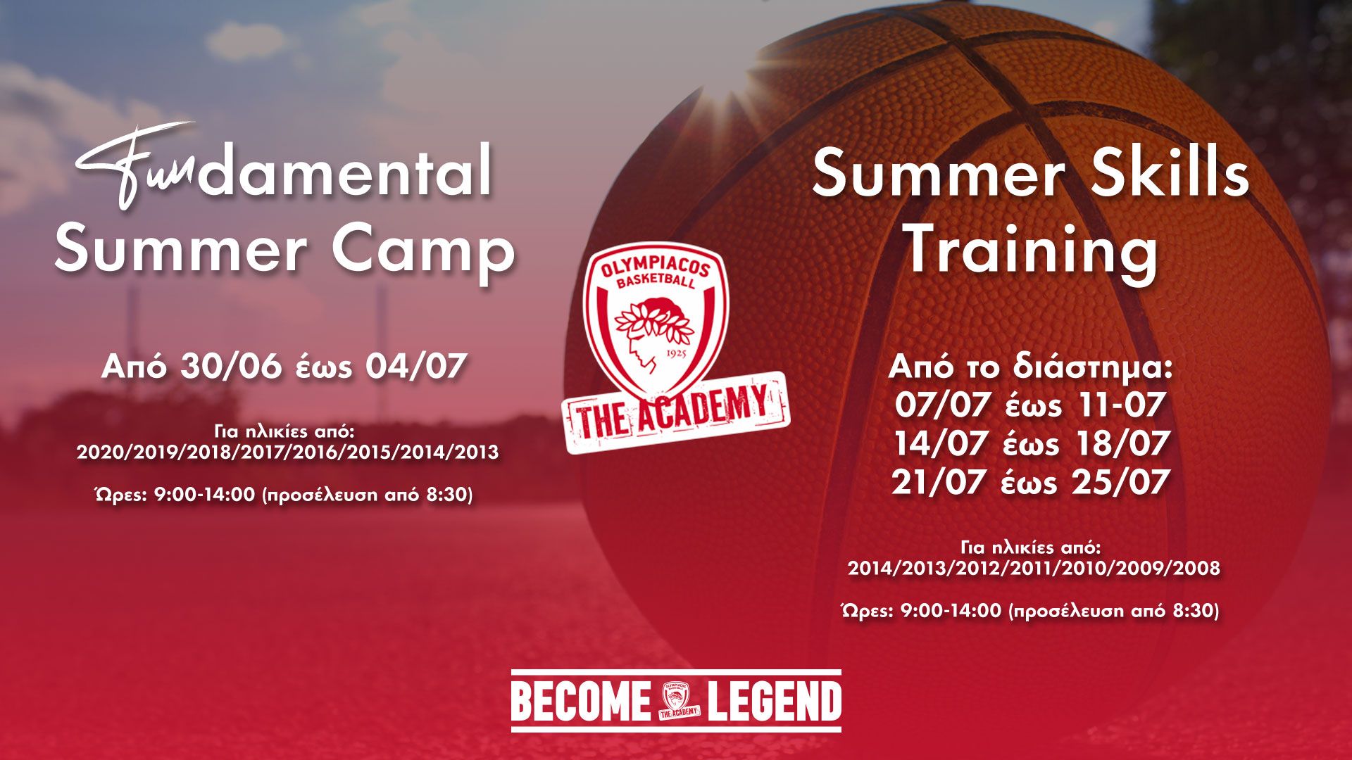 Η «ερυθρόλευκη» Ακαδημία καλεί όλα τα παιδιά να ζήσουν μια μοναδική μπασκετική εμπειρία μέσα από τα καλοκαιρινά της camp!