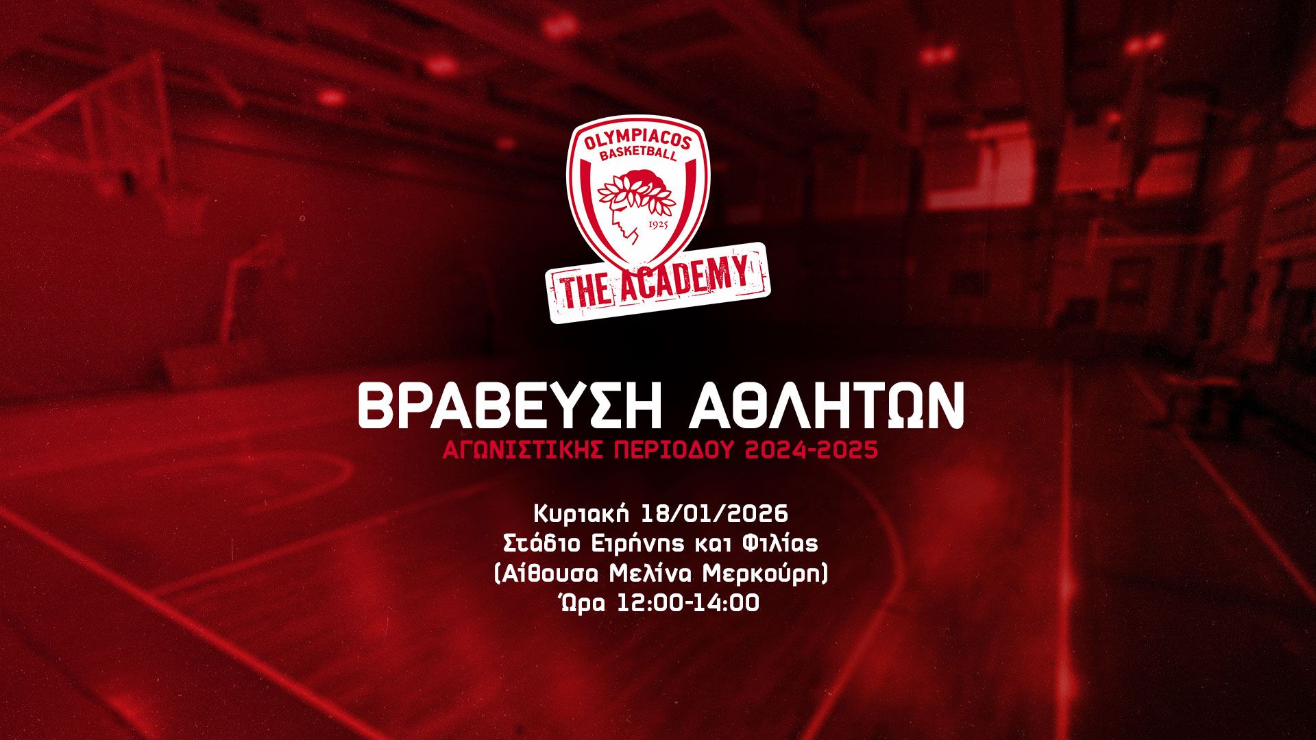 Την Κυριακή 18/01 στις 12.00 οι Ακαδημίες του Ολυμπιακού θα βραβεύσουν τους διακριθέντες αθλητές της σεζόν 2024/2025.