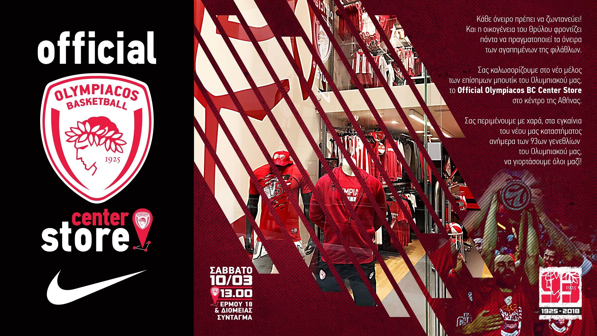 Το μεσημέρι του Σαββάτου (10/03) σύσσωμη η ομάδα μπάσκετ του Ολυμπιακού, αλλά και ο Πρόεδρός της, Παναγιώτης Αγγελόπουλος "έδωσαν" το "παρών" στα εγκαίνια του Official Olympiacos BC CenterStore (Ερμο…
