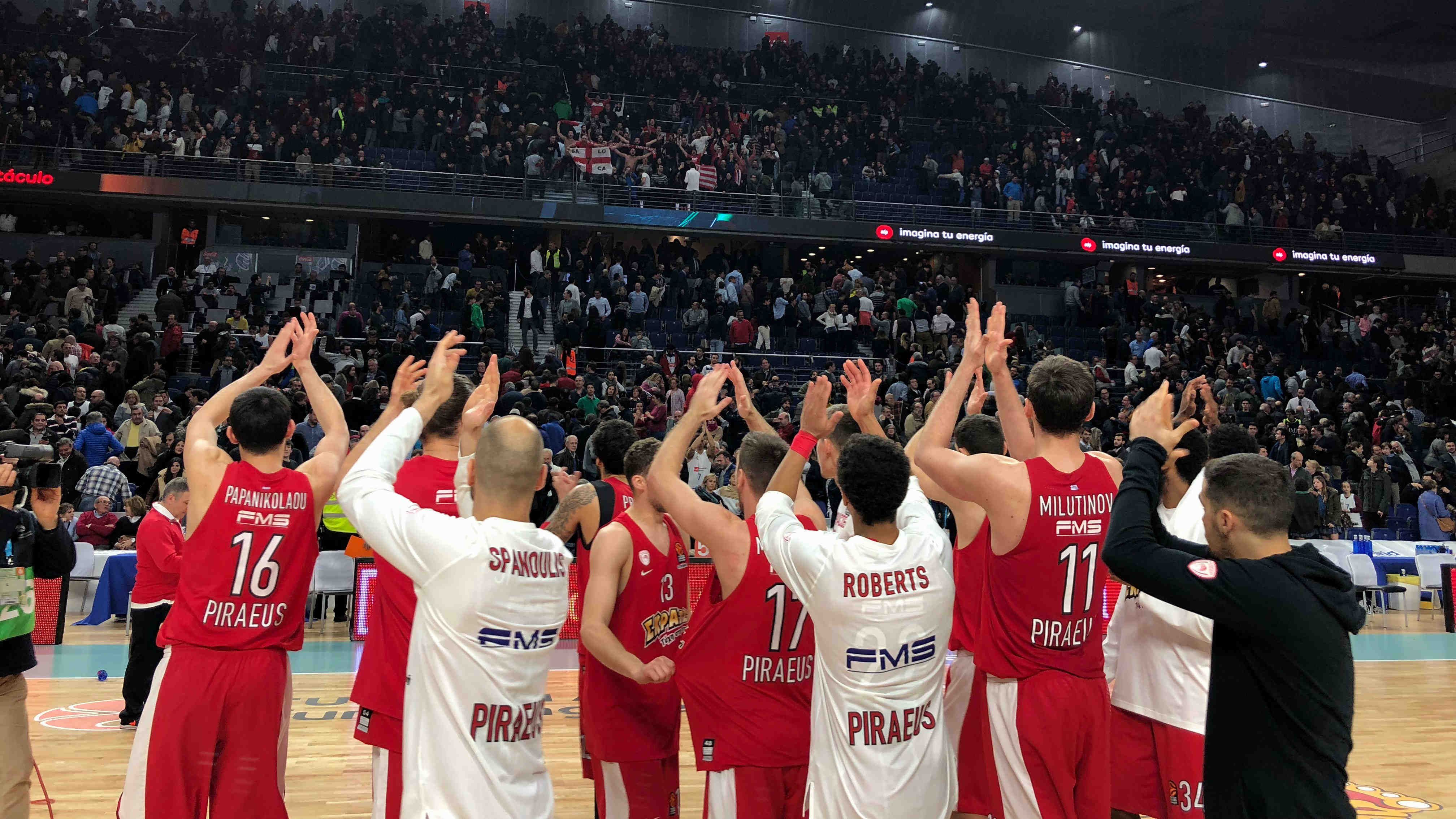 Ένα μεγάλο ευχαριστώ στους 70 φιλάθλους του Ολυμπιακού που βρέθηκαν στη Μαδρίτη και με τις φωνές τους έδωσαν δύναμη στους παίκτες του Θρύλου.