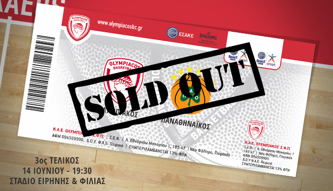Τα εισιτήρια του τρίτου τελικού (Κυριακή 14/6, 19:30), ο οποίος θα γίνει στο Στάδιο Ειρήνης και Φιλίας μεταξύ της ομάδας μας και του Παναθηναϊκού εξαντλήθηκαν!!!