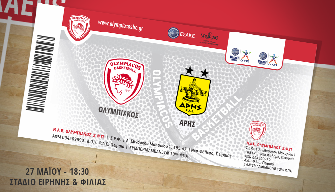 Η Διεύθυνση Εισιτηρίων της Κ.Α.Ε. ΟΛΥΜΠΙΑΚΟΣ ανακοινώνει ότι η διάθεση των εισιτηρίων για τους αγώνες Play offs Ελληνικού Πρωταθλήματος με τον AΡΗ, οι οποίοι θα διεξαχθούν την Τετάρτη 27/05/2015 και…