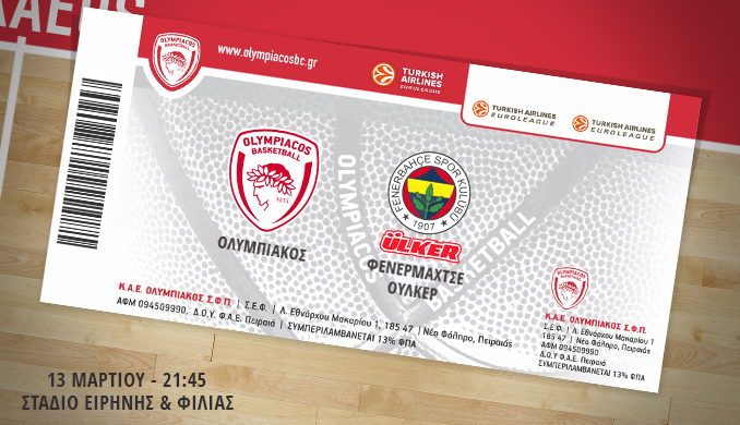 Η Διεύθυνση Εισιτηρίων της Κ.Α.Ε. ΟΛΥΜΠΙΑΚΟΣ ανακοινώνει ότι για τους αγώνες με το ΡΕΘΥΜΝΟ AEGEAN και με την FENERBAHCE ULKER ISTANBUL η διάθεση των εισιτηρίων θα πραγματοποιηθεί ως εξής: