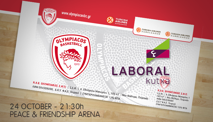 Η Διεύθυνση Εισιτηρίων της Κ.Α.Ε. ΟΛΥΜΠΙΑΚΟΣ ανακοινώνει ότι η διάθεση των εισιτηρίων για τον αγώνα Euroleague, OLYMPIACOS – LABORAL KUTXA VITORIA, ο οποίος θα διεξαχθεί την Παρασκευή 24 Οκτωβρίου 20…