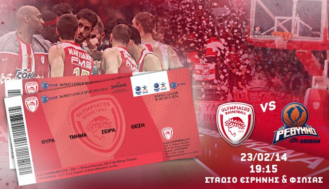 Η Διεύθυνση Εισιτηρίων της Κ.Α.Ε. ΟΛΥΜΠΙΑΚΟΣ ανακοινώνει ότι η διάθεση των εισιτηρίων για τον αγώνα Ελληνικού Πρωταθλήματος με το ΡΕΘΥΜΝΟ AEGEAN , ο οποίος θα διεξαχθεί την Κυριακή 23 Φεβρουαρίου 201…