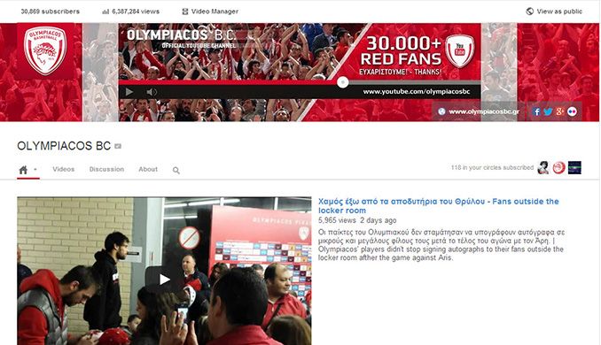 Το πρώτο βίντεο που δημιούργησε και ανέβασε στο Youtube το Olympiacos BC TV ήταν στις 2 Φεβρουαρίου 2010 μ’ αφορμή την παρουσία των Special Olympics στο ΣΕΦ κατά τη διάρκεια του αγώνα Ολυμπιακός – Εφ…