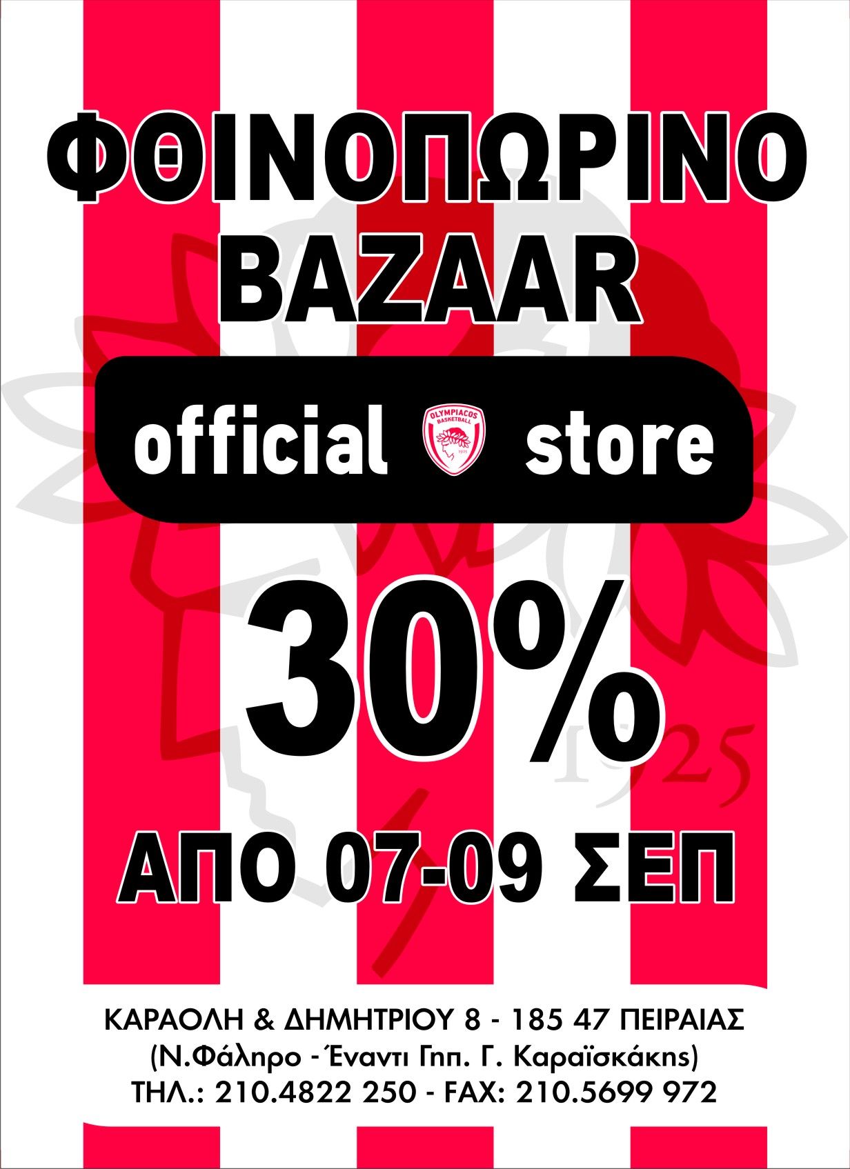 Το Official Olympiacos BC Store διοργανώνει ένα τριήμερο εκπτώσεων 30% σε όλα τα προϊόντα της ΚΑΕ Ολυμπιακός.