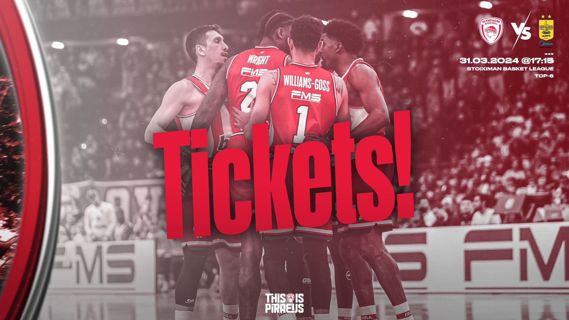 H Κ.Α.Ε ΟΛΥΜΠΙΑΚΟΣανακοινώνει ότι,για τον αγώνα του Ελληνικού Πρωταθλήματος BasketLeague2023 - 2024της φάσης ΤΟΡ 6 ΚΑΙ PLAYOUTSμε τοΠΕΡΙΣΤΕΡΙ BWINτης ΚΥΡΙΑΚΗΣ …