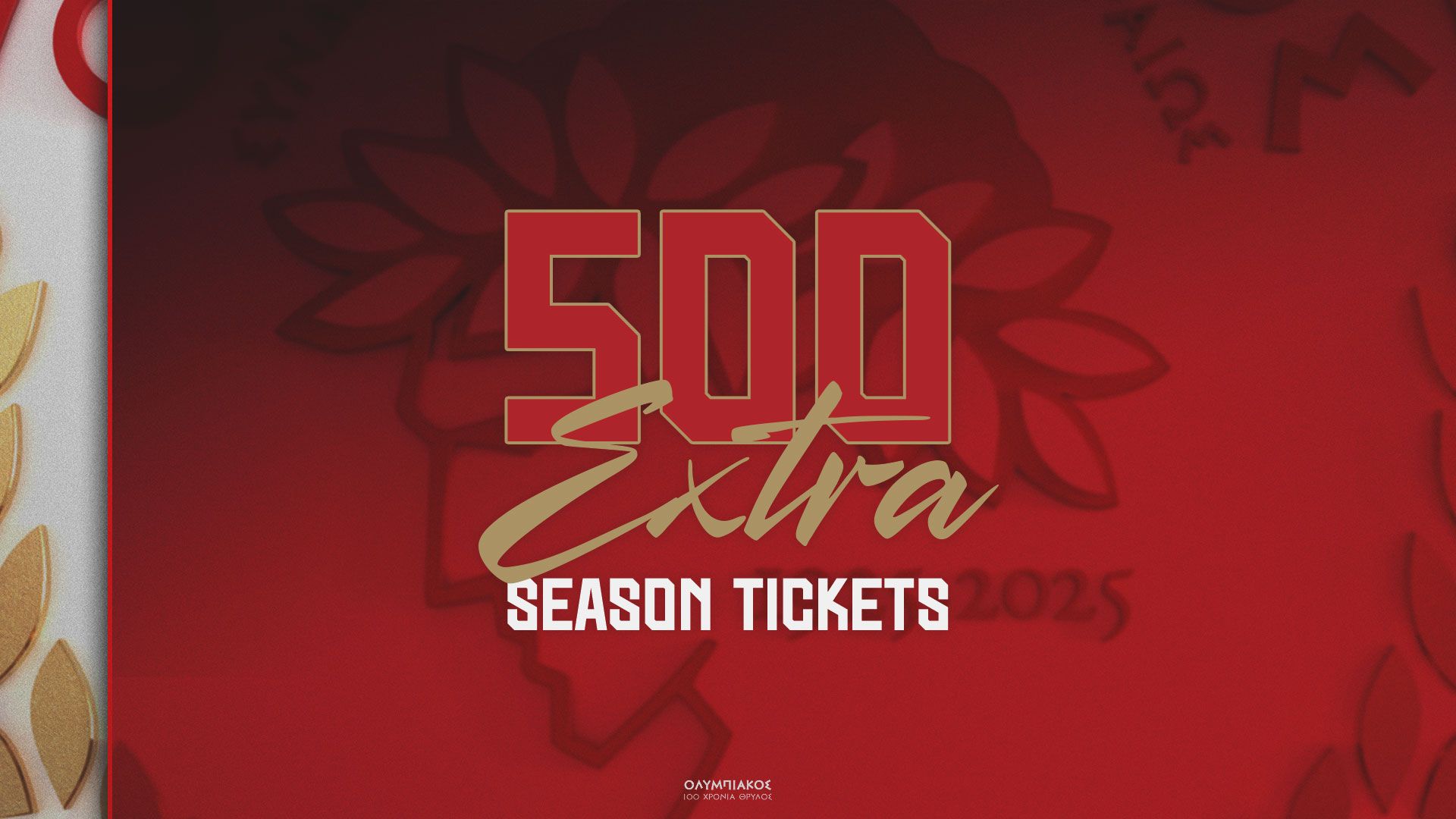 H KAE ΟΛΥΜΠΙΑΚΟΣ ανακοινώνει ότι την Κυριακή 13 Οκτωβρίου και ώρα 10:00, θα τεθούν σε κυκλοφορία οι 500 τελευταίες θέσεις διαρκείας.