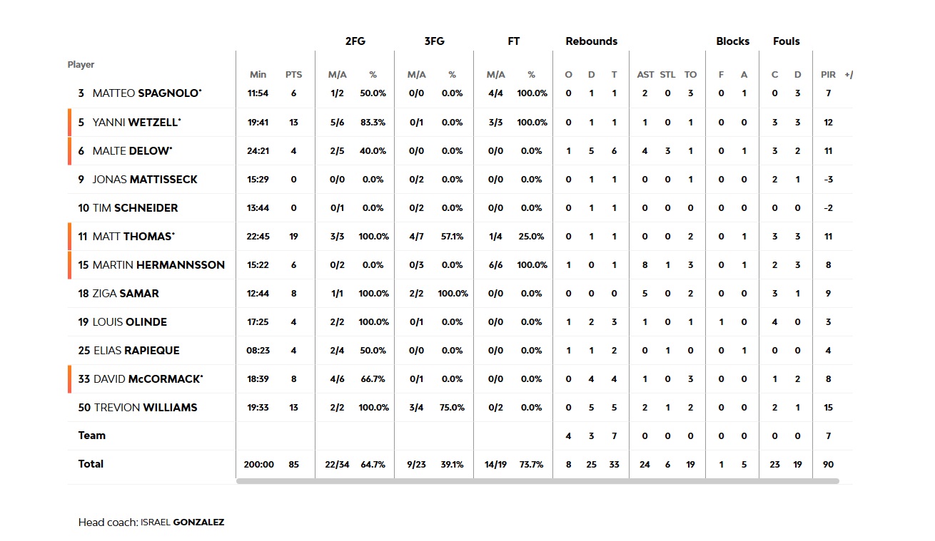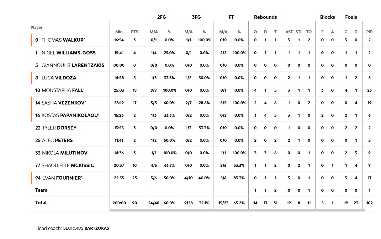 Δεκάλεπτο: 26-20, 44-41, 69-62, 90-85