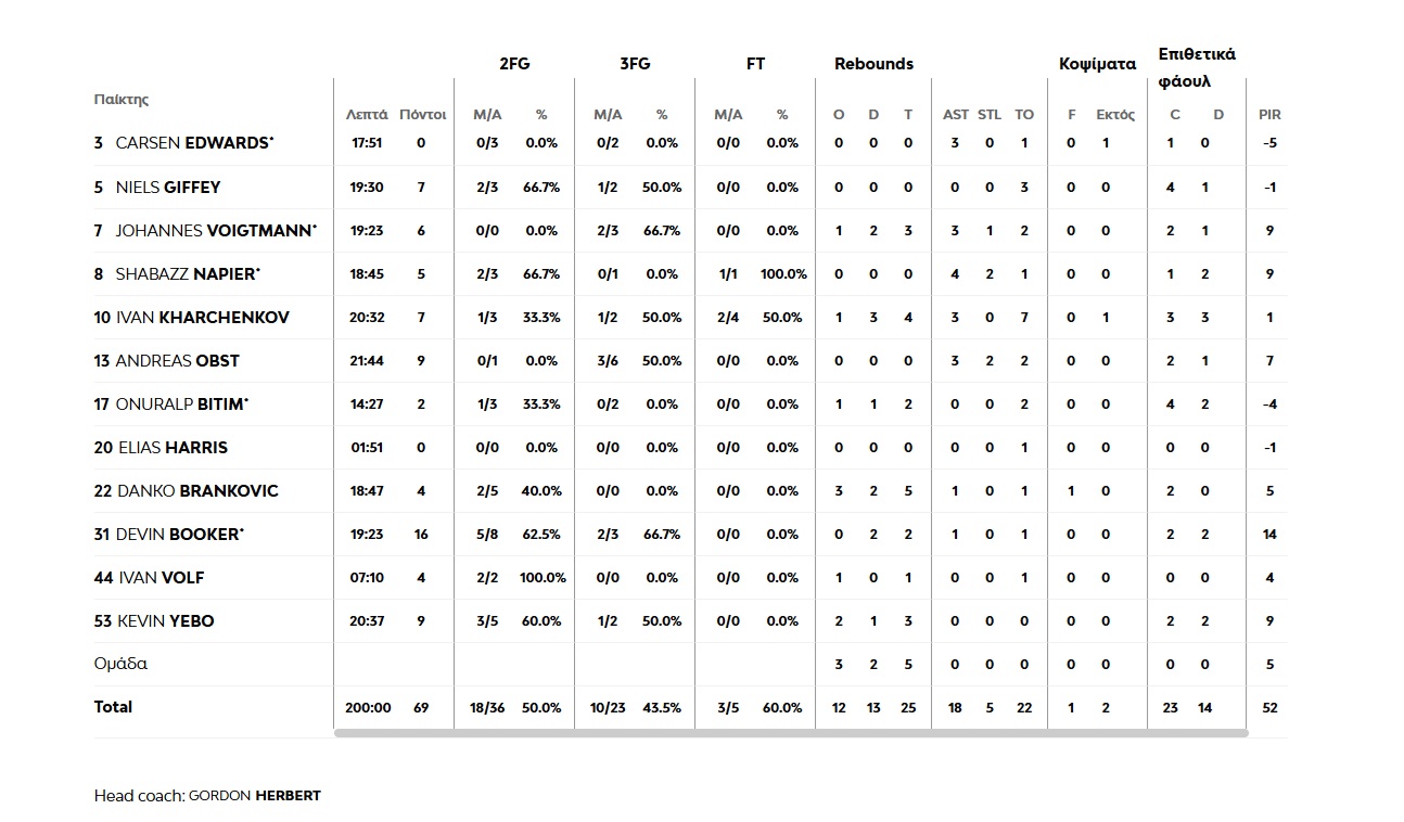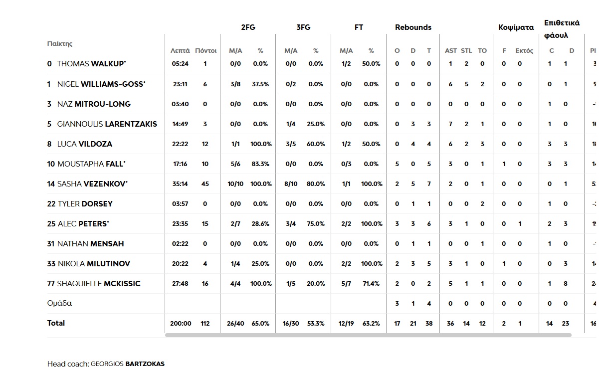 Δεκάλεπτα: 28-14, 51-37, 78-57, 112-69