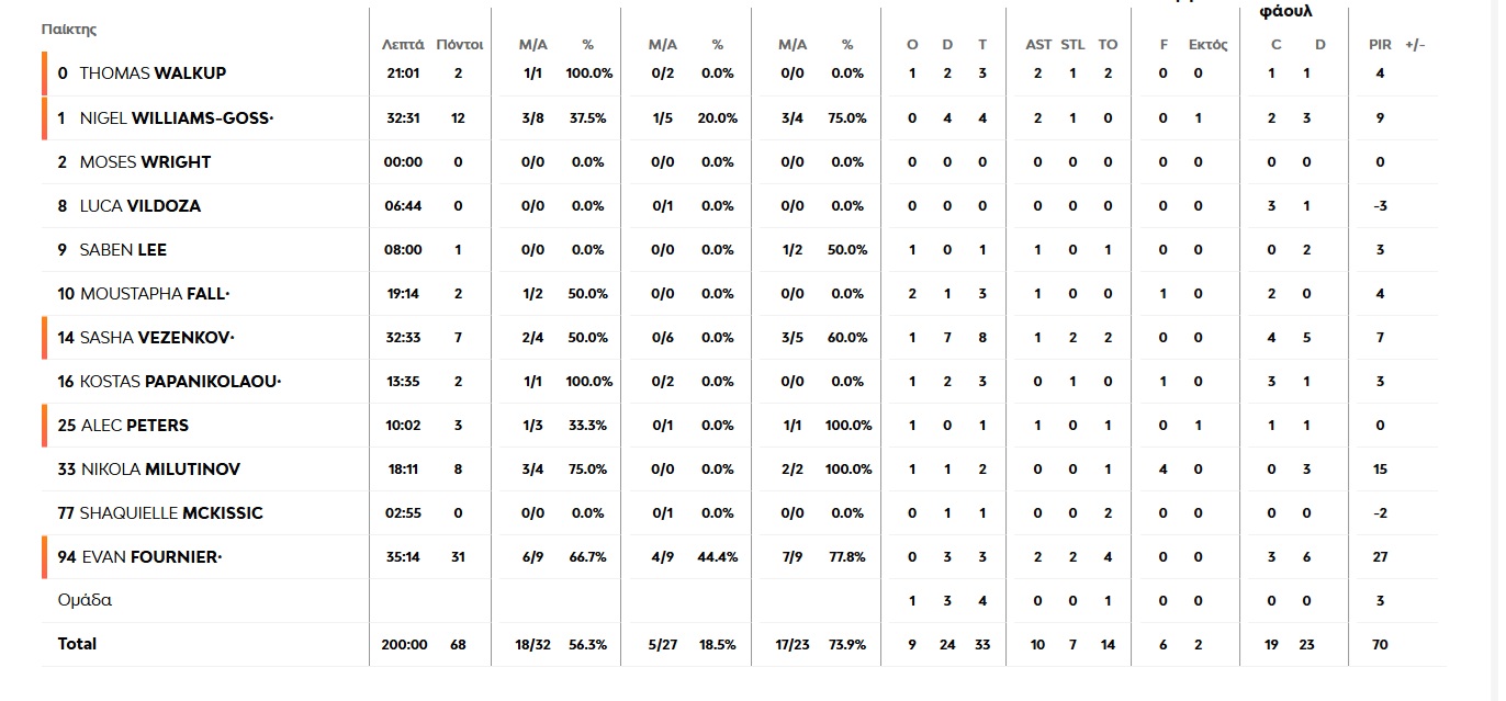 Δεκάλεπτα: 17-17, 32-35, 51-57, 68-78