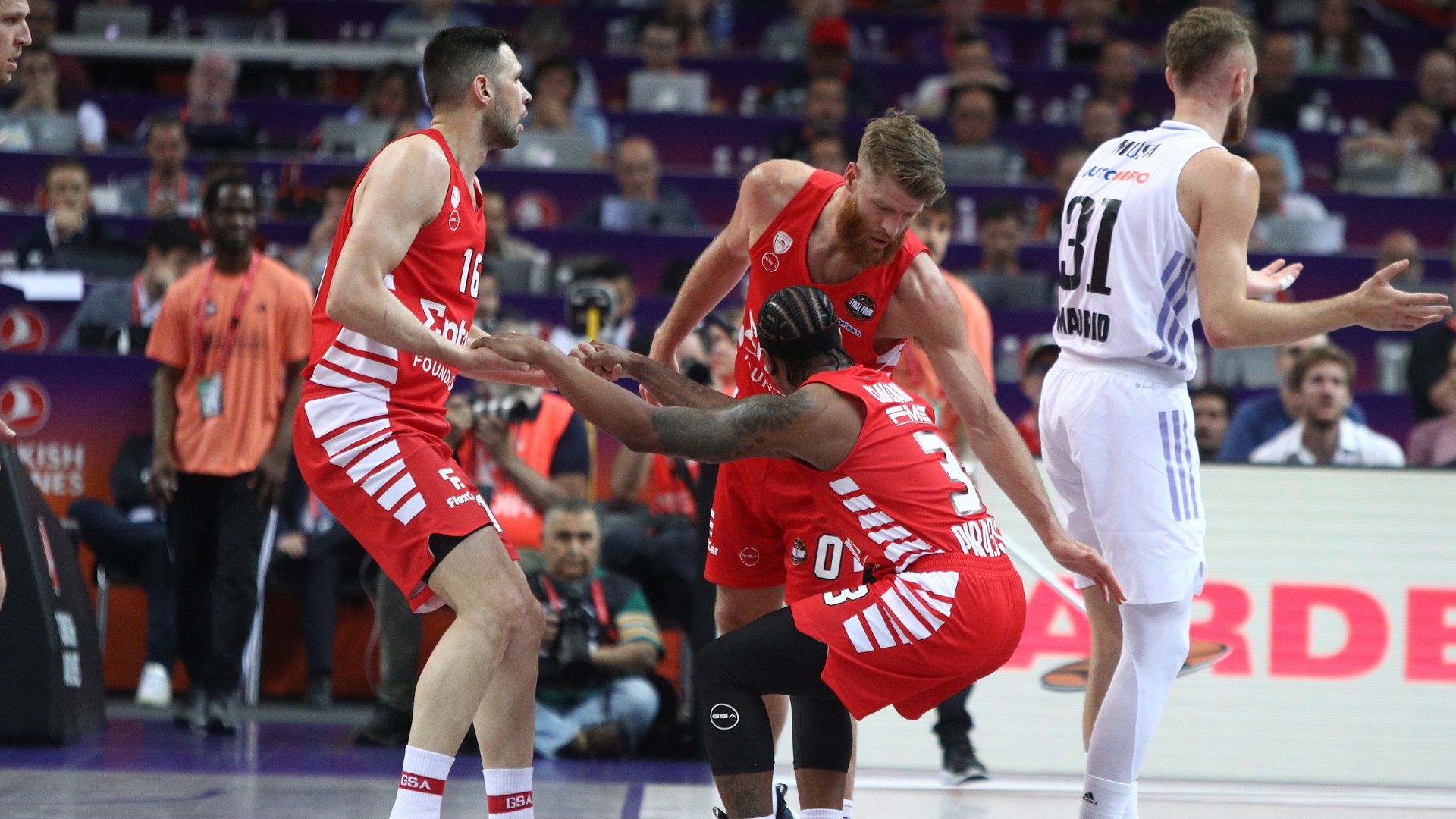 Και πάλι με επιθετικές αιχμές τους Κάνααν και Βεζένκοφ οι «ερυθρόλευκοι» πήραν μια ανάσα 5π. (57-52 στο 25’) και τελικά έκλεισαν την 3η περίοδο στο +4 (63-59). Με τρίποντο του Βεζένκοφ βρέθηκε στο +7 (68-61), ενώ παρά την περιφερειακή ευστοχία της Ρεάλμ διατήρησε σταθερά τα πρωτεία 78-72 στο 38’. Κάπου εκεί, όμως, υπέστη επιθετικό μπλακ άουτ, που είχε ως αποτέλεσμα να μην πετύχει πόντο μέχρι το τέλος! Αντίθετα η Ισπανική ομάδα βρήκε λύσεις απέναντι στην ερυθρόλευκη άμυνα και τελικά με δύο μεγάλα σουτ (το τελευταίο μάλιστα υπό ασφυκτική πίεση), δια χειρός Φερνάντεθ και Σέρχιο, το τελευταίο στα 3.2’’ για το τέλος. Στην τελευταία επίθεση ο Κώστας Σλούκας προσπάθησε να δώσει το στέμμα του Πρωταθλητή Ευρώπης στην ομάδα του, όμως, το σουτ του δεν βρήκε στόχο.