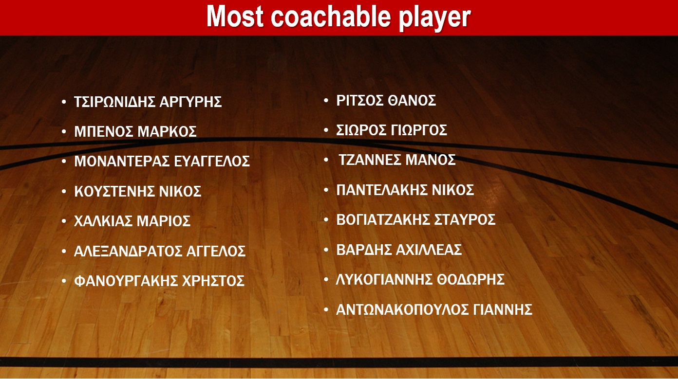 Η εκδήλωση ξεκίνησε με τη βράβευση των Most Coachable players την οποία ανέλαβε να κάνει ο Τόμας Γούοκαπ.