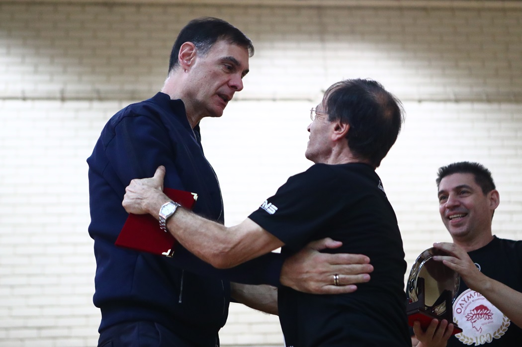 Για την στήριξη της διοίκησης και της ανδρικής ομάδας στο έργο και τις προσπάθειες της Ακαδημίας, εξέφρασε την συγκίνησή του και σχολίασε πως «από τότε που ήρθα στον Ολυμπιακό, πάνε τώρα παραπάνω από τρεις δεκαετίες, κατάλαβα ότι η ομάδα έχει μια φιλοσοφία να δένει τους ανθρώπους. Αυτό βοηθάει στο να γινόμαστε πιο δεμένοι, σαν σύνολο, όχι μόνο στην ομάδα, αλλά και την κοινωνία. Απόδειξη είναι τα παιδιά και όλοι εμείς».