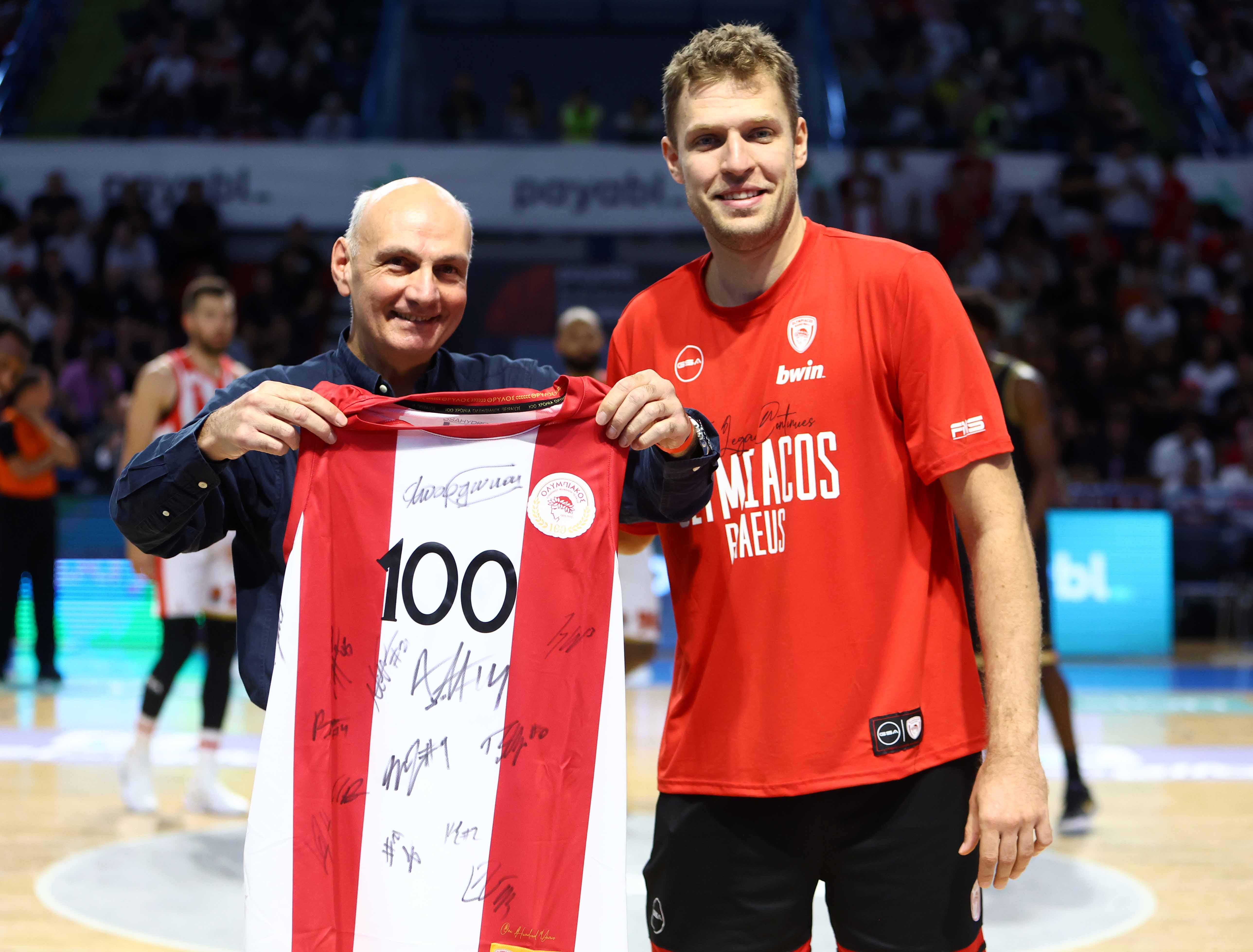 Πριν το τζάμπολ του φιλικού αγώνα του Ολυμπιακού με τη Μονακό, στo πλαίσιo του διεθνούς τουρνουά «Νεόφυτος Χανδριώτης», οι «ερυθρόλευκοι» τίμησαν τον πατέρα του αείμνηστου Νεόφυτου και τους διοργανωτές του τουρνουά.