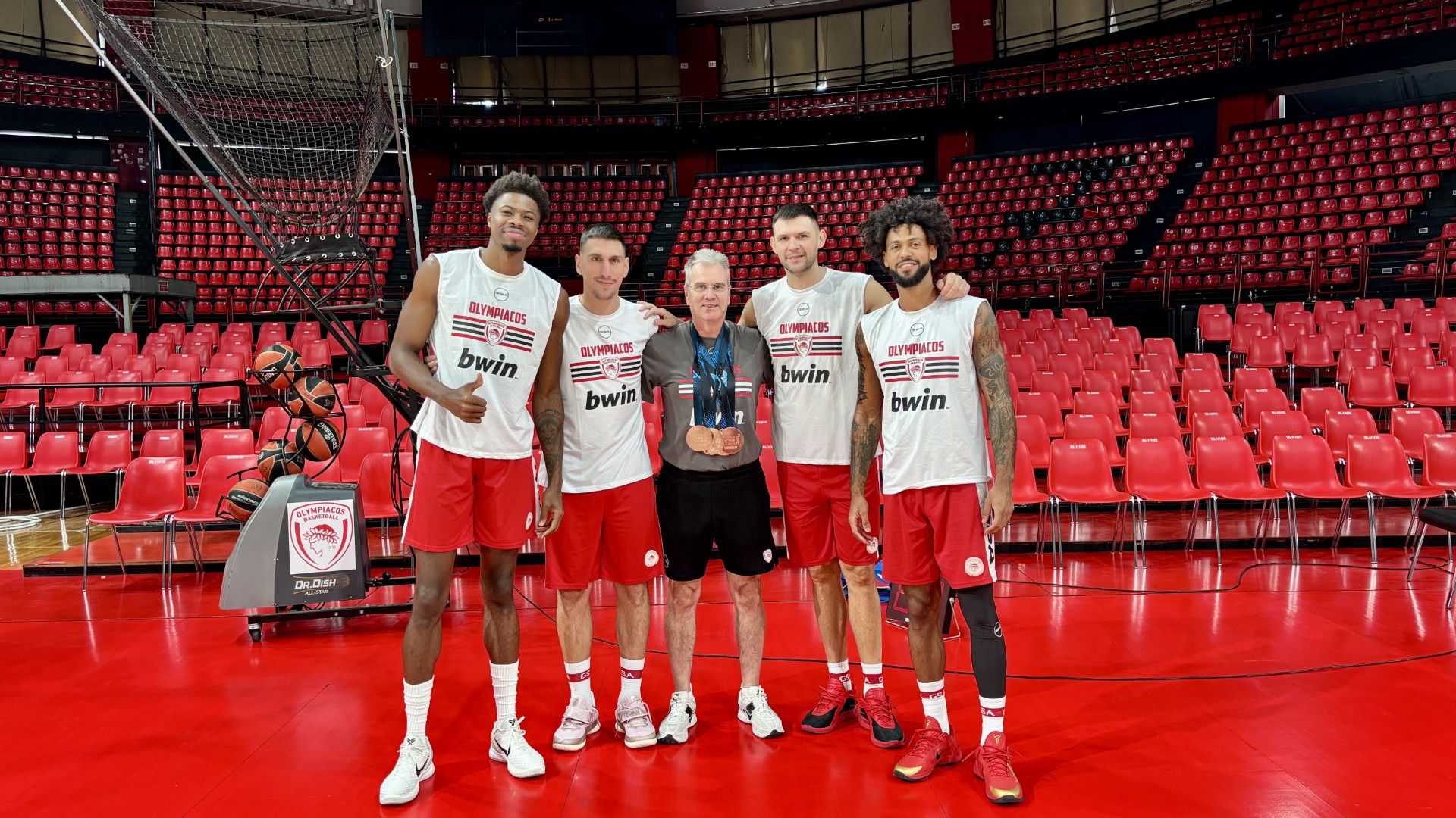 Άπαντες τους υποδέχθηκαν θερμά, με τον προπονητή του Ολυμπιακού, Γιώργο Μπαρτζώκα, να καλεί –πριν την έναρξη της προπόνησης- τους παίκτες του να τους ανταμείψουν για την μεγάλη επιτυχία τους με ένα θερμό χειροκρότημα!