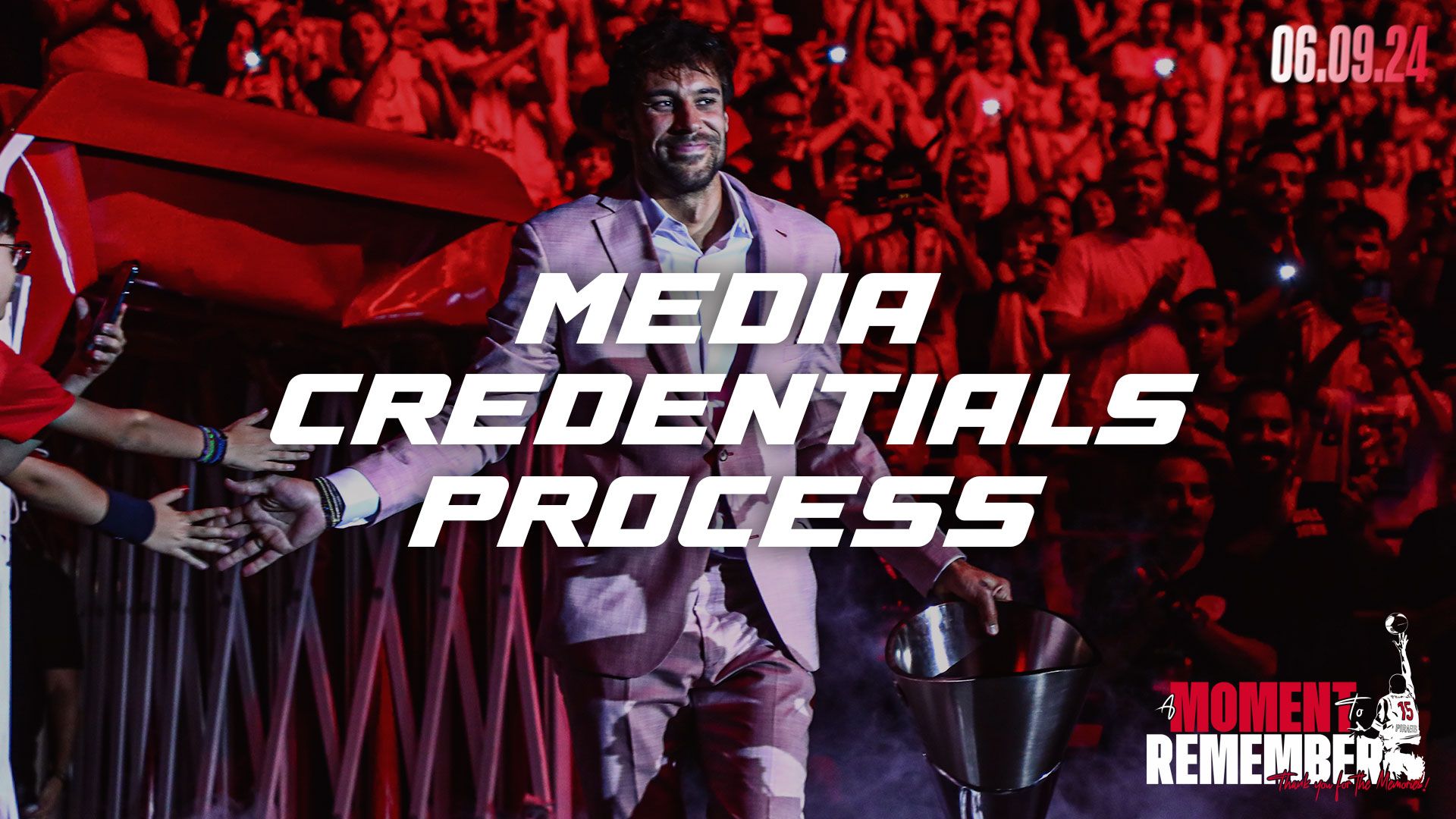 H KAE Ολυμπιακός ανακοινώνει πως από σήμερα (28/08) ξεκινά η διαδικασία υποβολής αιτημάτων από τους δημοσιογράφους που επιθυμούν να «καλύψουν» την μεγάλη βραδιά του Γιώργου Πρίντεζη, “A Moment To Remember” (06/09/24).