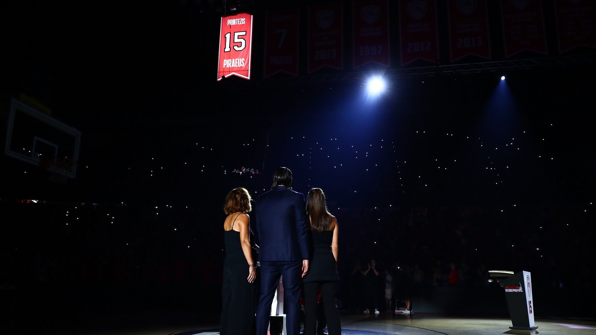 Μια στιγμή... χίλιες αναμνήσεις! Η φανέλα με το Νο15 του Γιώργου Πρίντεζη βρίσκεται πλέον στο μέρος που της αξίζει! Στον ουρανό του ΣΕΦ!