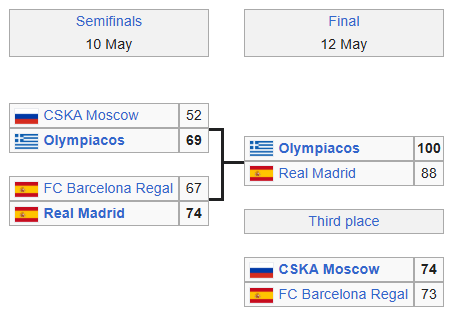 | 12/05/2013 | OLYMPIACOS – REAL MADRID | 100-88 |