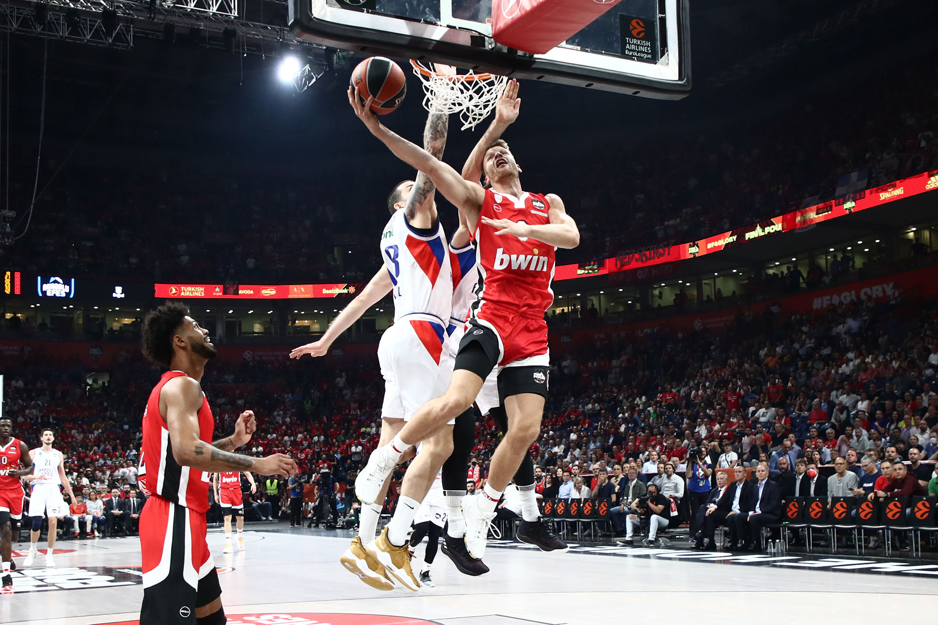 Ας πάρουμε, όμως τα πράγματα από την αρχή. Στον... εντός έδρας ημιτελικό απέναντι στην Πρωταθλήτρια Ευρώπης Αναντολού Εφές αφού οι οπαδοί του, είχαν μετατρέψει την Stark Arena σε ΣΕΦ, ο πρωτάρης στη νέα του εκδοχή Ολυμπιακός πάλεψε σαν θηρίο. Η ομάδα του προπονητή της χρονιάς Γιώργου Μπαρτζώκα, μπήκε καλύτερα στο ματς και παρά το γεγονός ότι το σύνολο του Εργκιν Αταμάν πήγε το παιχνίδι εκεί που ήθελε στην 3η περίοδο, αντέδρασε και ισοφάρισε λίγο πριν από το τέλος. Τελικά λύγισε από το τρίποντο του Μίσιτς στην εκπνοή, με την Εφές να φτάνει στην νίκη με 77-74 και ν' ανοίγει τον δρόμο της για της κατάκτηση του δεύτερου σερί τίτλου.