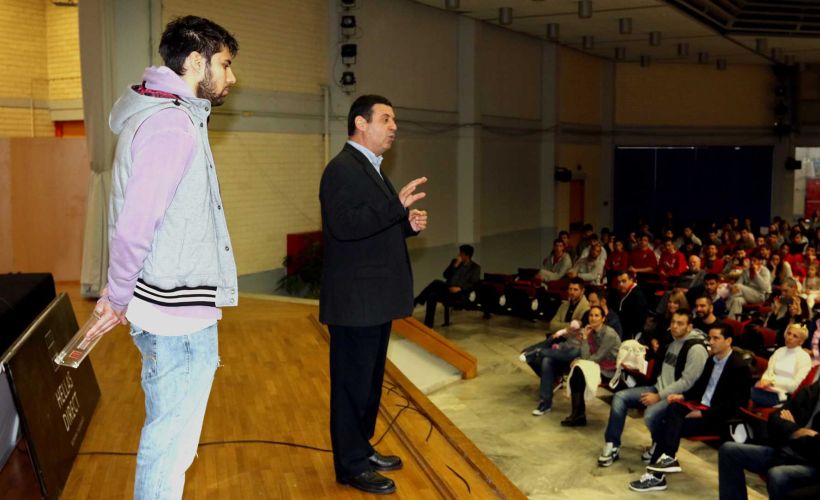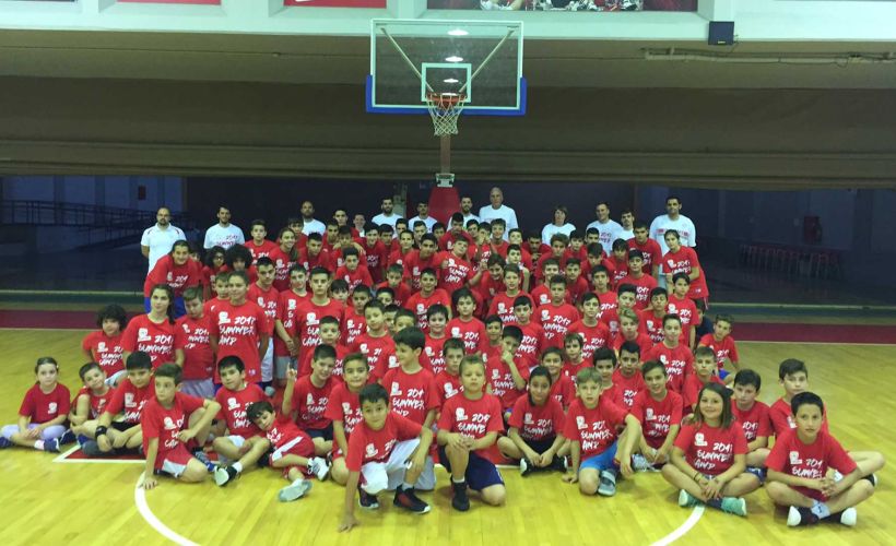 The immediate associate of Giannis Sfairopoulos in the bench of the men's team was the surprise waiting the 150 kids participating the first part of the Summer Camp organized by the Olympiacos Academies.