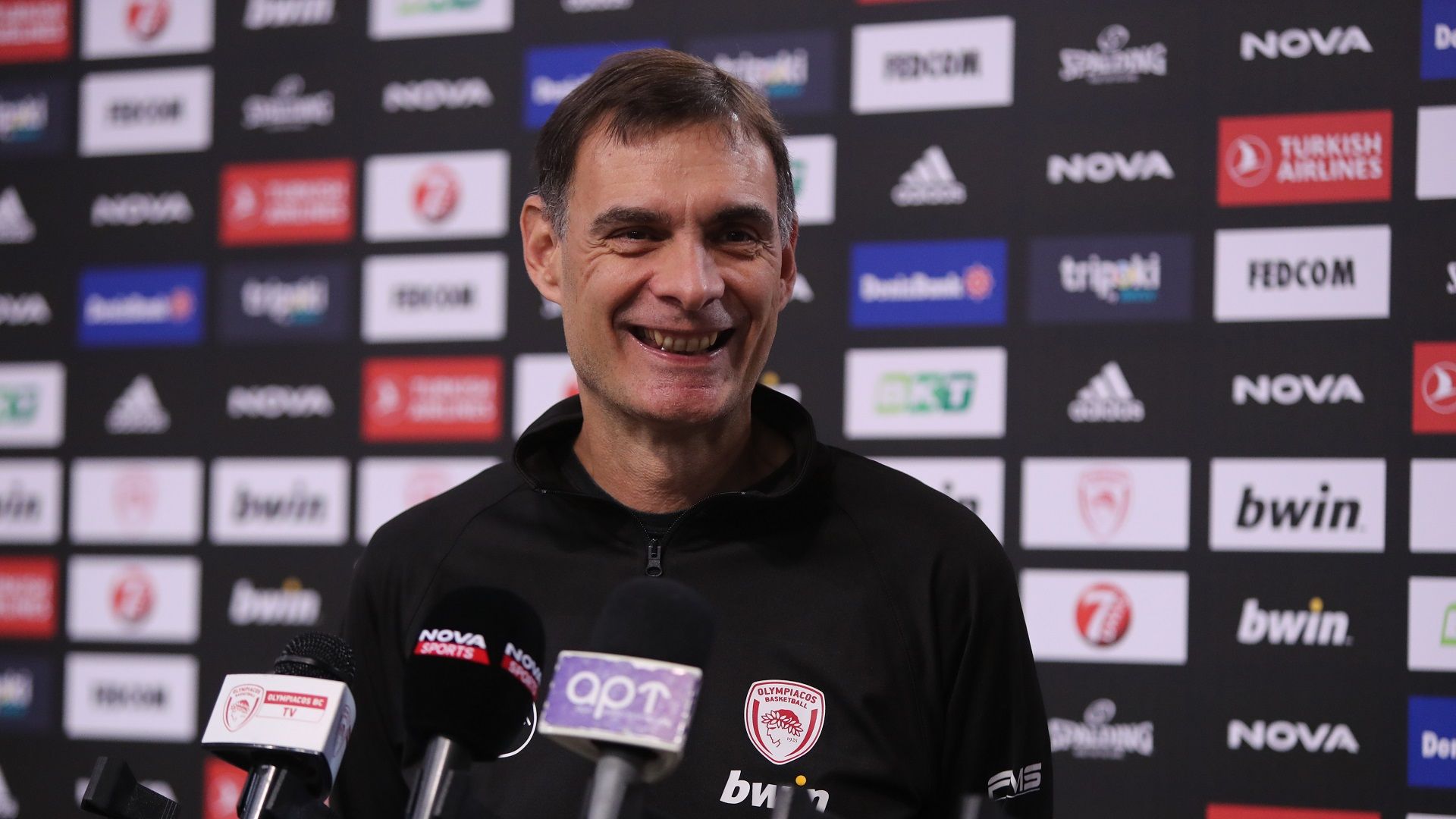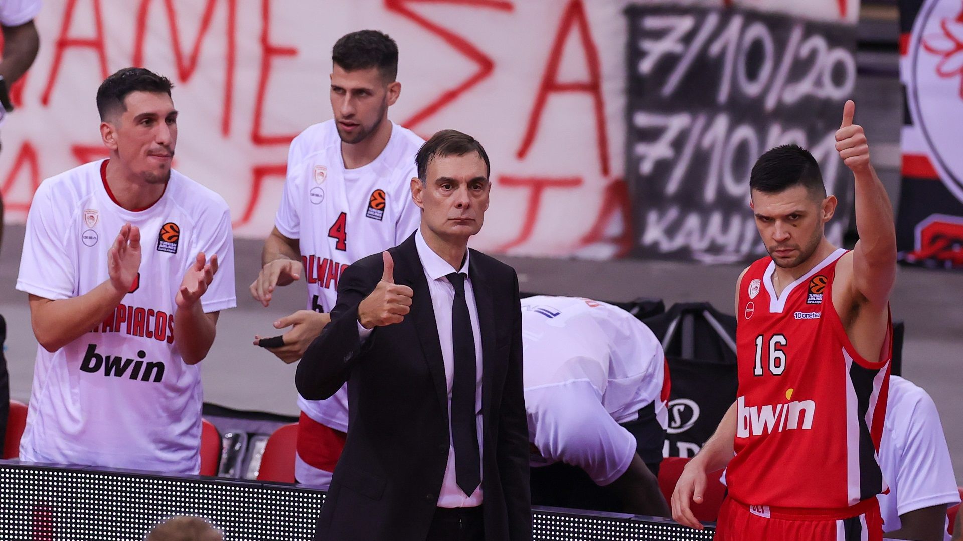 The coach of Olympiacos, Giorgos Bartzokas, congratulated his players and the fans following the victory over Zalgiris.