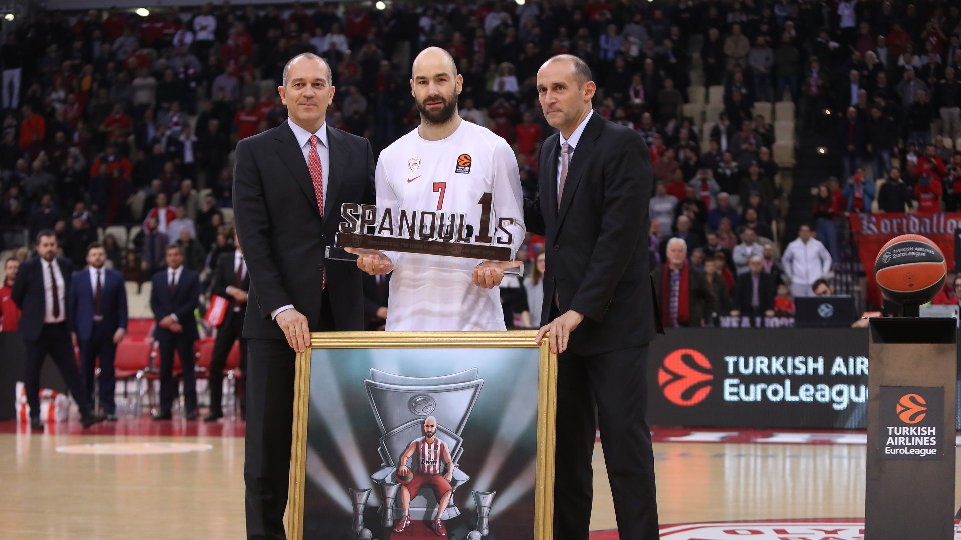 Before the jump ball of the game against Alba Berlin, Olympiacos BC honored Vassilis Spanoulis on his big record, that is his emergence as the top scorer in the history of the Euroleague.
