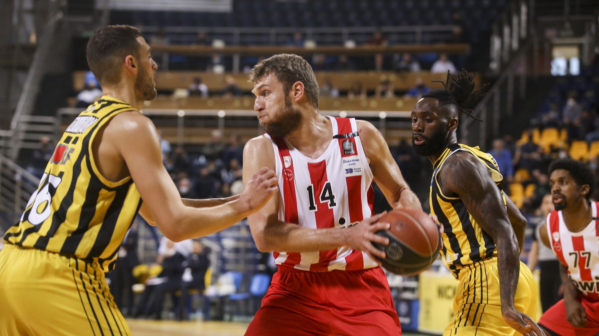 Although ‘hurt’ (played without Vezenkov, Papanikolaou, Printezis and McKissic), Olympiacos was able to return from -16 and secure an important win against AEK (80-74), for the 14th day of the Stoixi…
