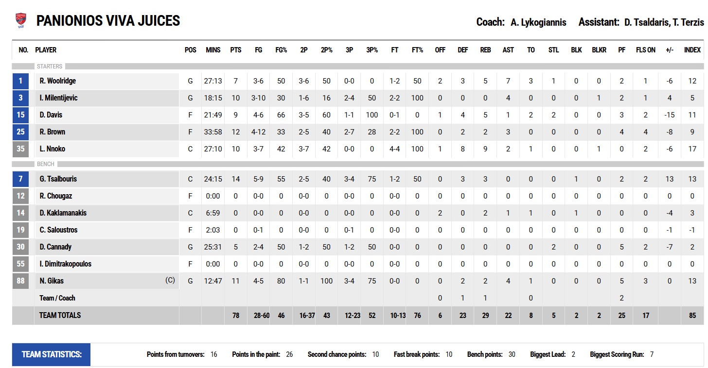 The third quarter began with greater intensity in defense and seven unanswered points by Sasha Vezenkov (35-47, 22') with the margin widening to 12 points. Panionios reacted striking from the perimeter and taking advantage of some bad choices, our team made when attacking, dropped the difference to single digits (43-49, 25'). Sasha Vezenkov and Nikola Milutinov were providing scoring solutions (46-54, 26'), however, missed shots and turnovers facilitated a 7-2 partial for Panionios, for the 53-56 that marked the end of the third quarter. In the last quarter, Nikola Milutinov was the protagonist of the two initial plays of the game, making the score 53-58, for Evan Fournier to follow with five points of his own and hence the score becoming 55-64 (33'), with Olympiacos controlling the game after getting into rhythm in offense (58-71, 35'). The French guard upped the difference to 14p. (58-71) with five minutes remaining for the end of the game. Panionios tried to stay in the game (66-77, 37'), but our team remained focused to the end and Williams-Goss scored an important 2-pointer for the 74-83, 39') to secure a big win in a tough court (78-84), before the double Euroleague week that follows...