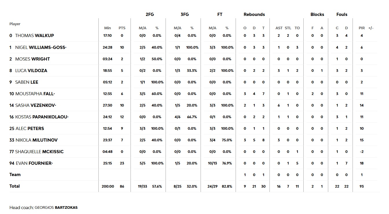 The 'red & whites' started the final quarter just as strongly, going on an 11-0 run and reaching their largest lead of the night (65-79, 33’). Captain Kostas Papanikolaou was an absolute standout, hitting 3 of 4 from the deep and playing with high energy on defense, supported by Luca Vildoza and Nikola Milutinov (67-82, 34’). Olympiacos held Real to just 6 points for about five minutes, but then lost focus and allowed an 11-0 run, cutting the lead to 78-82. That’s when Sasha Vezenkov stepped up, hitting a nine-meter three-pointer to push the lead to 78-85 with two minutes to go. Errors by Olympiacos allowed Real back into the game, narrowing the score to 82-85 with 16 seconds left, and 84-85 with 14 seconds. Evan Fournier made one of two free throws, the defense held, Abalde missed the final shot, and the game ended 86-84; a huge win and qualification to the Final Four for Olympiacos!