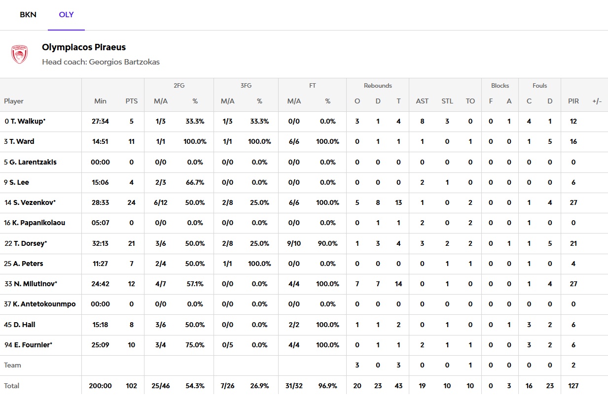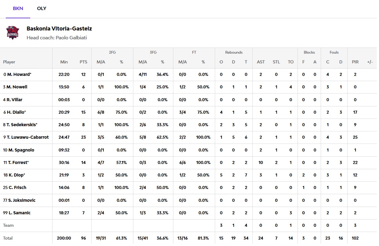 The battle continued in the fourth quarter with Donte Hall and Tyler Dorsey providing key plays (75-77, 32’), but Baskonia took advantage of poor transition defense and hit from beyond the arc (84-81). With the game down to a single possession, Evan Fournier stepped up, and then Sasha Vezenkov and Thomas Walkup hit back-to-back clutch three-pointers (94-99), giving Olympiacos a 5-point lead with 40 seconds to go. Nikola Milutinov sealed the win with a dunk - assisted by Fournier - making it 96-101 with 15 seconds left. Olympiacos held on for a hard-fought road win, starting their European campaign on the right foot: 102-96!