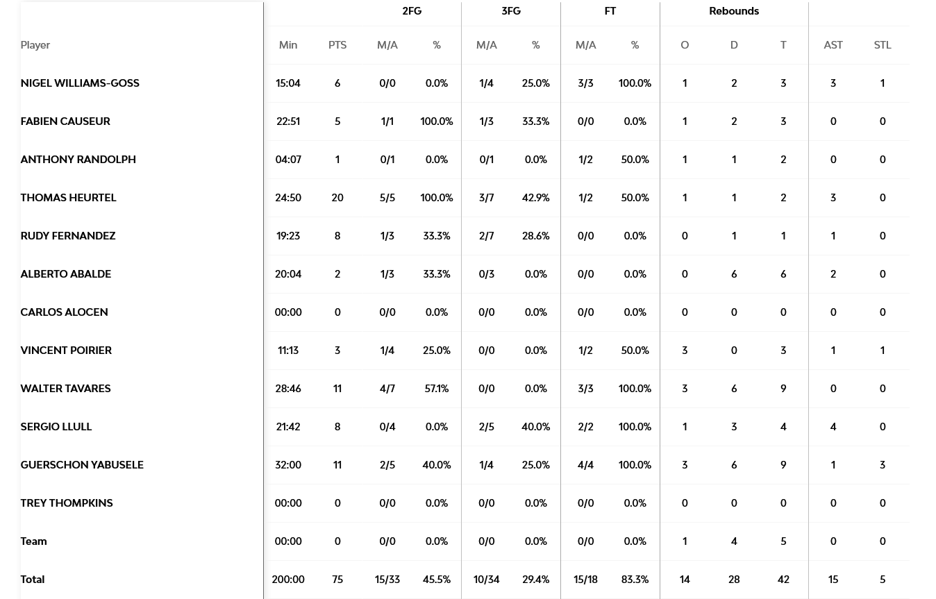 With Kostas Papanikolaou playing an excellent game and leaning on some real solid defense, Olympiacos succeeded – despite very poor perimeter percentages (1/6) – to close the first quarter at +5 (10-15). The hosts continued being ‘hammered’ by the ‘reds’ defense, when at the same time, Kostas Sloukas and Sasha Vezenkov took action in the offense and sent the difference to +16 (20-36) at 17’. The Madrilène – who had been shooting terribly up to that time (4/13 twos and 4/20 threes), tried to react, but Bartzokas’ players effectively put a stop on their efforts and went to the locker room with +14 (24-38).