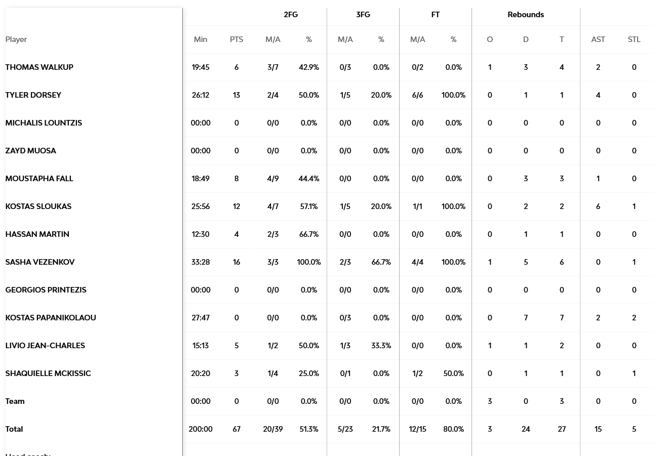 However, the ‘reds’ did not get into the second half with the same energy and as clear headed. Gaps in the defense, bad decisions in the offense and missed rebounds allowed the Spanish team to set the tempo and get ahead 55-51 at 32’. Bartzokas’ players though refused to surrender. They put pressure in the defense, found solutions with Sasha Vezenkov and Tyler Dorsey and once again got in the driver’s seat (62-63 at 36’). Up to 39’ the game was a derby (67-65 for the hosts). However, missed threes by Walkup and Dorsey against on target ones by Fernandez and Llull decided the game for Real (73-65).