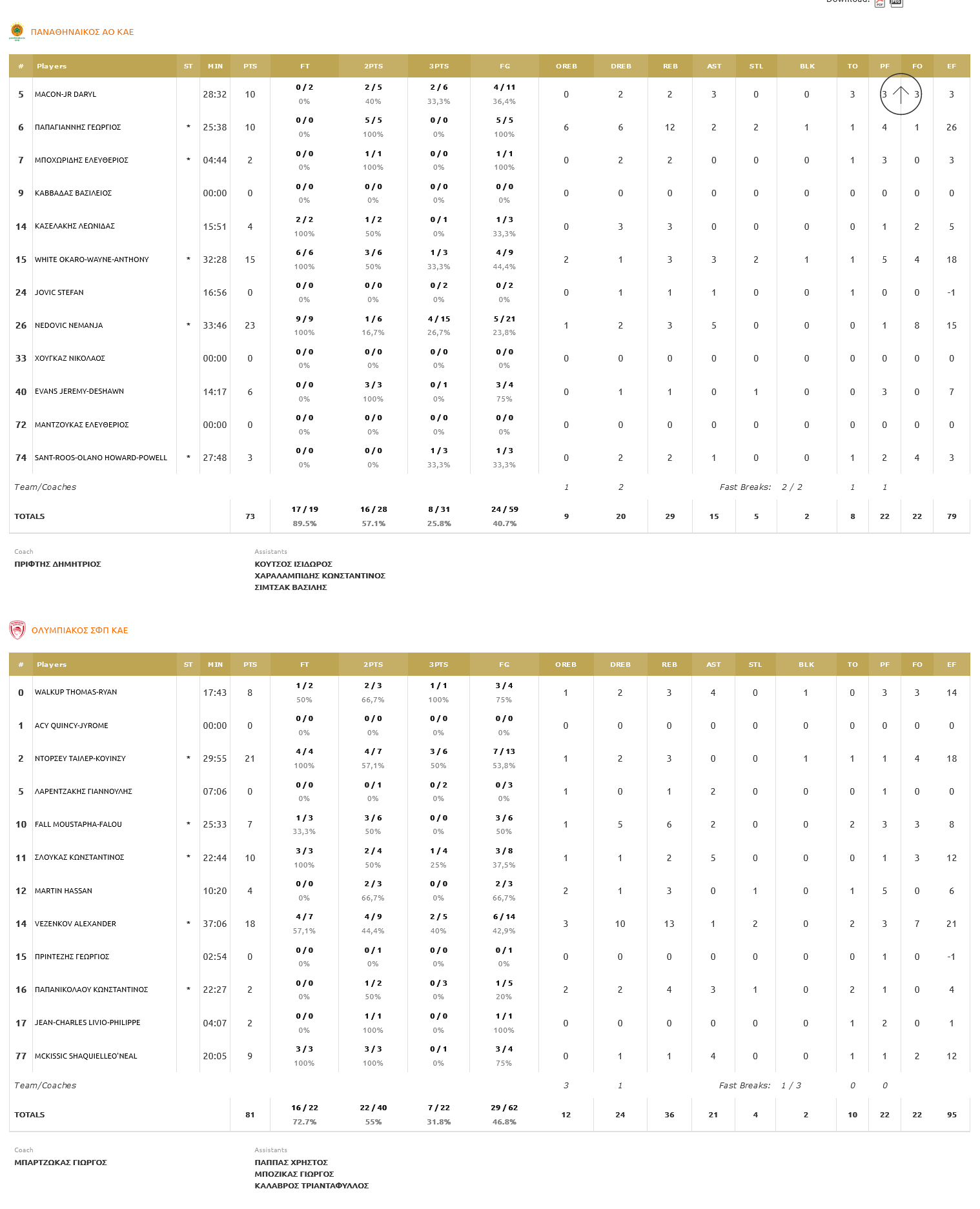 Everything changed in the fourth quarter though! Olympiacos played with abundant energy and leaning on defense, got to run a 15-0 partial, which gave them the lead and made the score 73-67 at 37’. Okaro White scored the first points for Panathinaikos in the last quarter from the free throw line (69-73, 2:37’’ before the end), while from the same position, it was Nedovic that wrote the 73-77 (43’’ before the final buzzer). Olympiacos however continued ‘betting’ on their defense and thanks to their composure from the free throw line got the win.