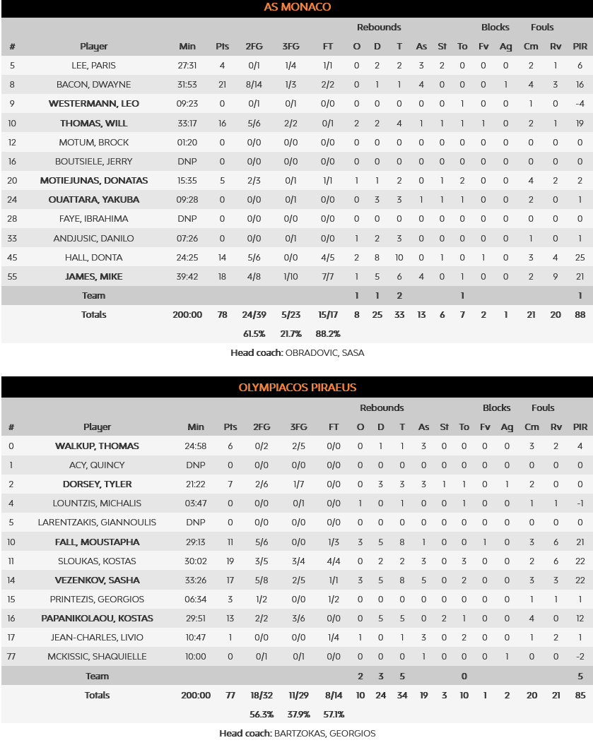 Our team refused to give up though… Papanikolaou and Vezenkov took over and with a 10-0 partial, our team once again got in the driver’s seat (70-71 at 35’). The game became a first class derby, with Bacon’s bucket 50” before the final buzzer being the one that awarded the win to Monaco (78-77), since he later on missed a shot for 2p. 15’’ before the end, while Sloukas missed in his attempt for a three at the buzzer.