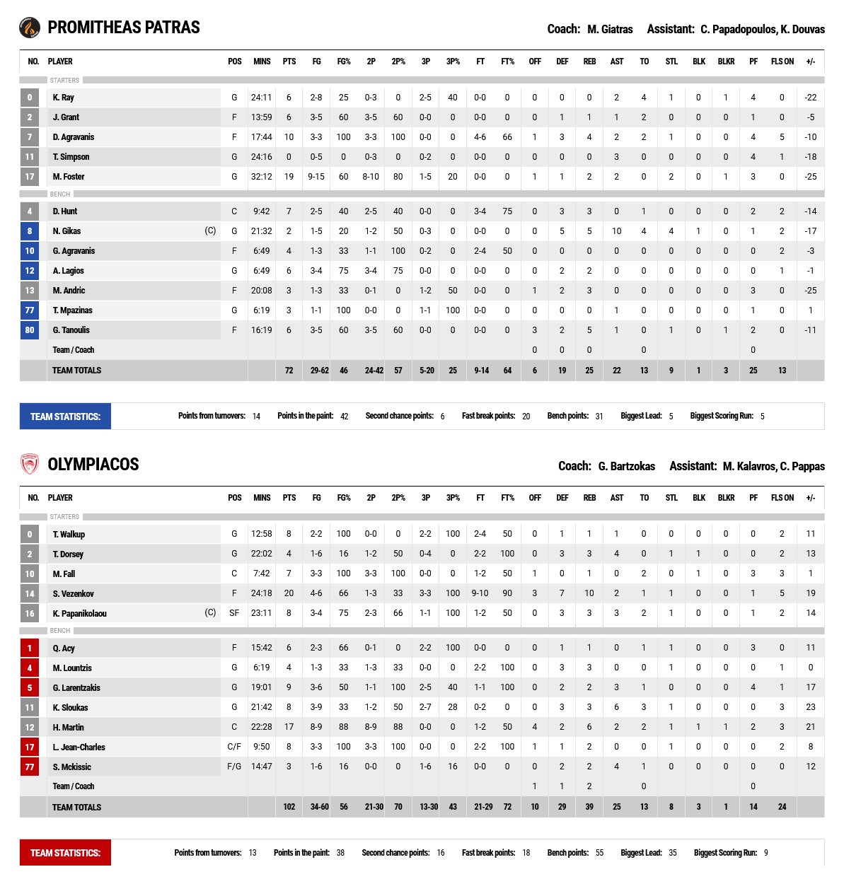 Olympiacos beat Promitheas in Patras 102-72, is now leading the semis 2-0 and a win in the 3rd game scheduled for Saturday (04/06, 19:00 CET) at the SEF will ‘seal’ their ticket for the Stoiximan Basket League finals.