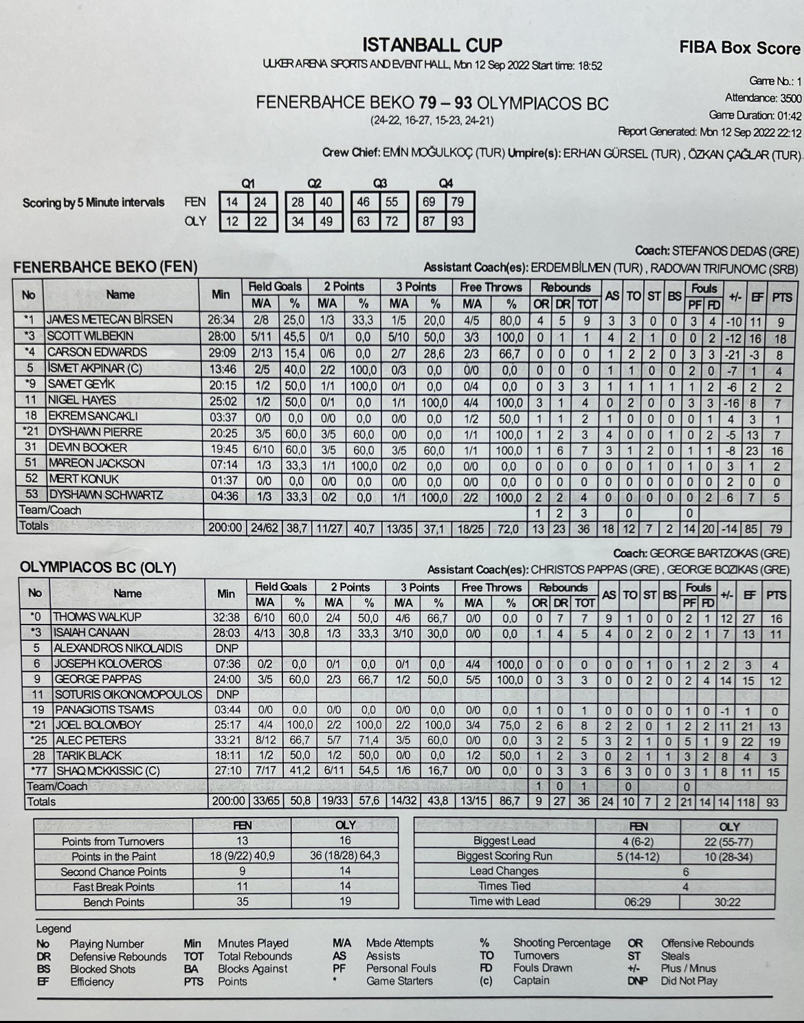 Fenerbahce - Οlympiacos 79-93