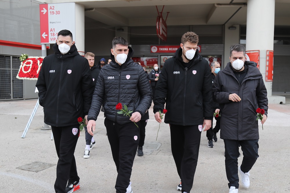 Tuesday noon (08/02) the whole team of Olympiacos visited the monument commemorating the victims of Gate 7 and paid tribute to the 21 tragically lost fans.